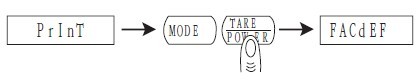 第2步 重復(fù)按TARE鍵,使天平顯示“F A Cd EF ”(F A C T O R YDEF A UL T S)。